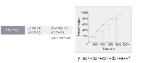 ■高精度(設定點為基準)MFC的線性度將由近似多項式曲線進行補償。這幫助實現(xiàn)了對所有流量控制范圍的高精度控制。為了實際氣體流量的準確性進一步提高,各種工藝氣體的校準數(shù)據(jù)將按照HORIBA STEC標準的氣體測量系統(tǒng)進行校驗。